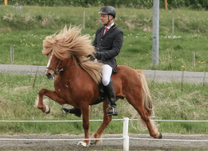 The offspring is quick to mature, willing, and courageous. The tölt is soft and long-strided with good leg action. The trot is also long-strided, though it could sometimes show more suspension. The gallop is elastic and spacious, while the pace is very well-balanced and secure. The walk is clear and rhythmic.
